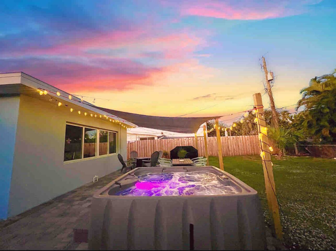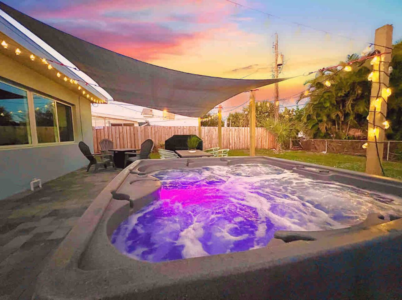 Breathe in the ocean air at this charming Cocoa Beach home 🌊✨ just moments from the sand 🏖️. A sunny open layout and well-equipped kitchen invite connection with family and friends 🌴🍹. Sleeps 8 guests with a King Bed, Queen Bed, 2 Twins, and a Sofa Bed 🛏️. Unwind in the spa, and share fireside laughs beneath the coastal stars 🔥🌅. ✈️ Melbourne Int’l (MLB) 30–35 min away.