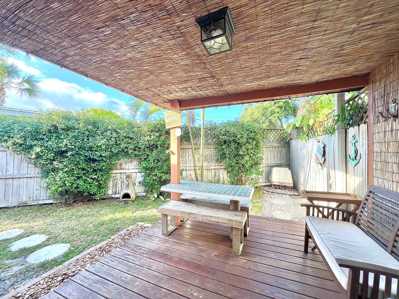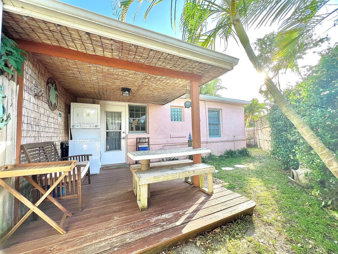 Experience Cocoa Beach's coastal vibes in this cozy 2-bedroom, 1-bath coastal cottage. Enjoy your morning coffee on the inviting front patio, perfectly situated across from local shops and restaurants—ideal for people-watching or a relaxing start to your day. This private getaway offers a fully fenced backyard with a sun deck, outdoor hammock, charcoal BBQ grill, outdoor shower, and outdoor dining area—perfect for enjoying Florida’s sunshine in total seclusion. Inside, the cottage features a king bed, two twin beds, and a full bathroom, with TVs and Netflix, plus complimentary Wi-Fi throughout. The fully stocked kitchen has all the essentials for cooking at home. You’ll also find a washer and dryer, along with beach chairs for your seaside adventures. No shared common areas—just your own peaceful slice of paradise. 🌴 Explore the vibrant coastal paradise of Cocoa Beach, FL! Dive into thrilling activities like surfing, kayaking, and beach volleyball, or unwind with sunset strolls along the shore. Indulge in fresh seafood at waterfront restaurants, sip cocktails at beach bars, and savor local flavors at charming cafes, all which are just a short walk away. ⛱️ Discover the renowned Cocoa Beach Pier for shopping, dining, and entertainment, or head to Ron Jon Surf Shop for beach gear and souvenirs. Experience the natural beauty of the area with eco-tours, fishing charters, and wildlife encounters. 🏖️ Located on Florida's Space Coast, Cocoa Beach offers easy access to Kennedy Space Center for a dose of space exploration and witnessing our exciting Rocket Launches. With Melbourne International Airport nearby, your adventure in Cocoa Beach is just a short drive away! Unwind, explore, and create unforgettable memories in this sun-soaked beach destination. We are available 24/7 for any assistance, recommendations or suggestions during your stay here. Don't forget to check out our Guidebook.